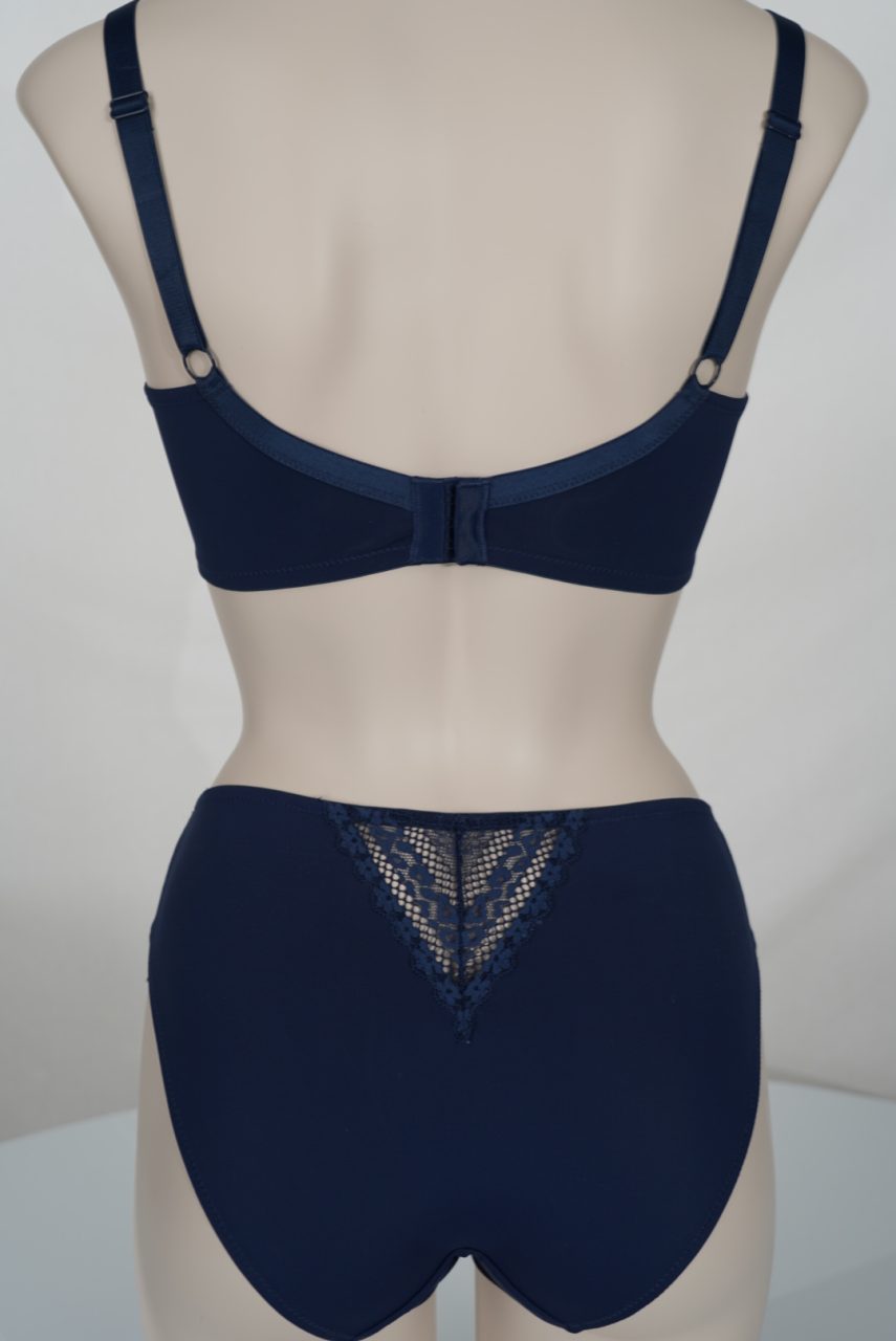 Setin viimeistelevät kauniit taihousut, joissa yhdistyvät sileä materiaali, joustavuus ja näyttävä pitsi. Housut istuvat miellyttävästi ja antavat kevyesti tukea. Selkäpuolen läpikuultava pitsikolmio tuo asuun eleganttia naisellisuutta ja tekee kokonaisuudesta erityisen viimeistellyn.