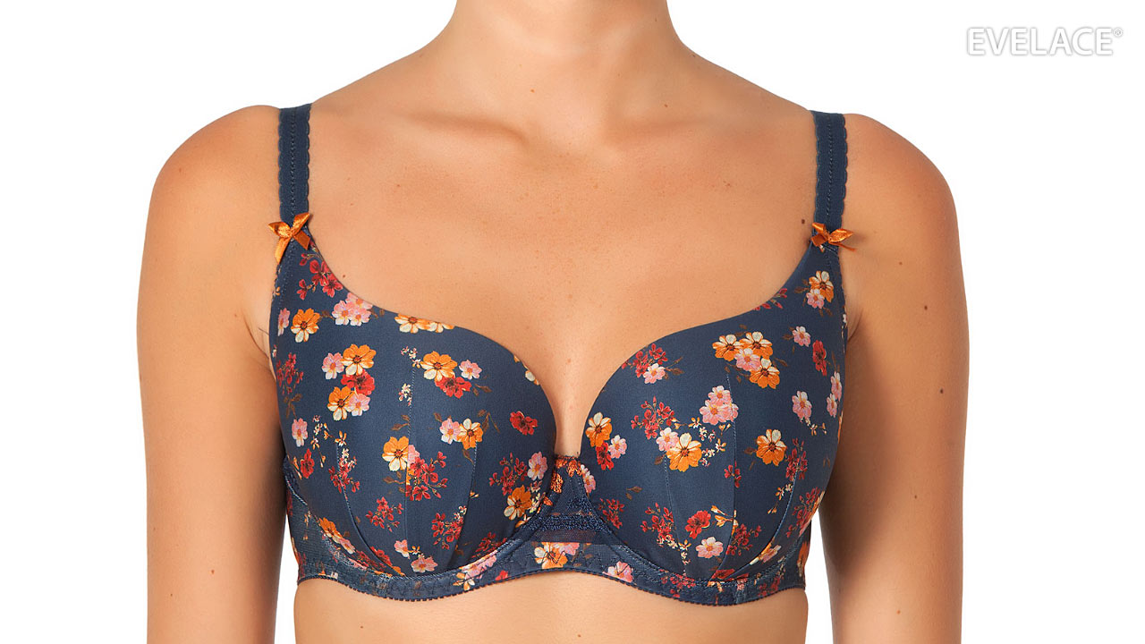 Fiorella liivi verhoilee upeasti dekolteeta nousten kauniisti ylös rintakehällä. Liivi on kokokuppinen ja sen erikoisuutena on, että leveät olkaimet lähtevät lähes kupin keskeltä pitäen liivin tukevasti paikallaan.
