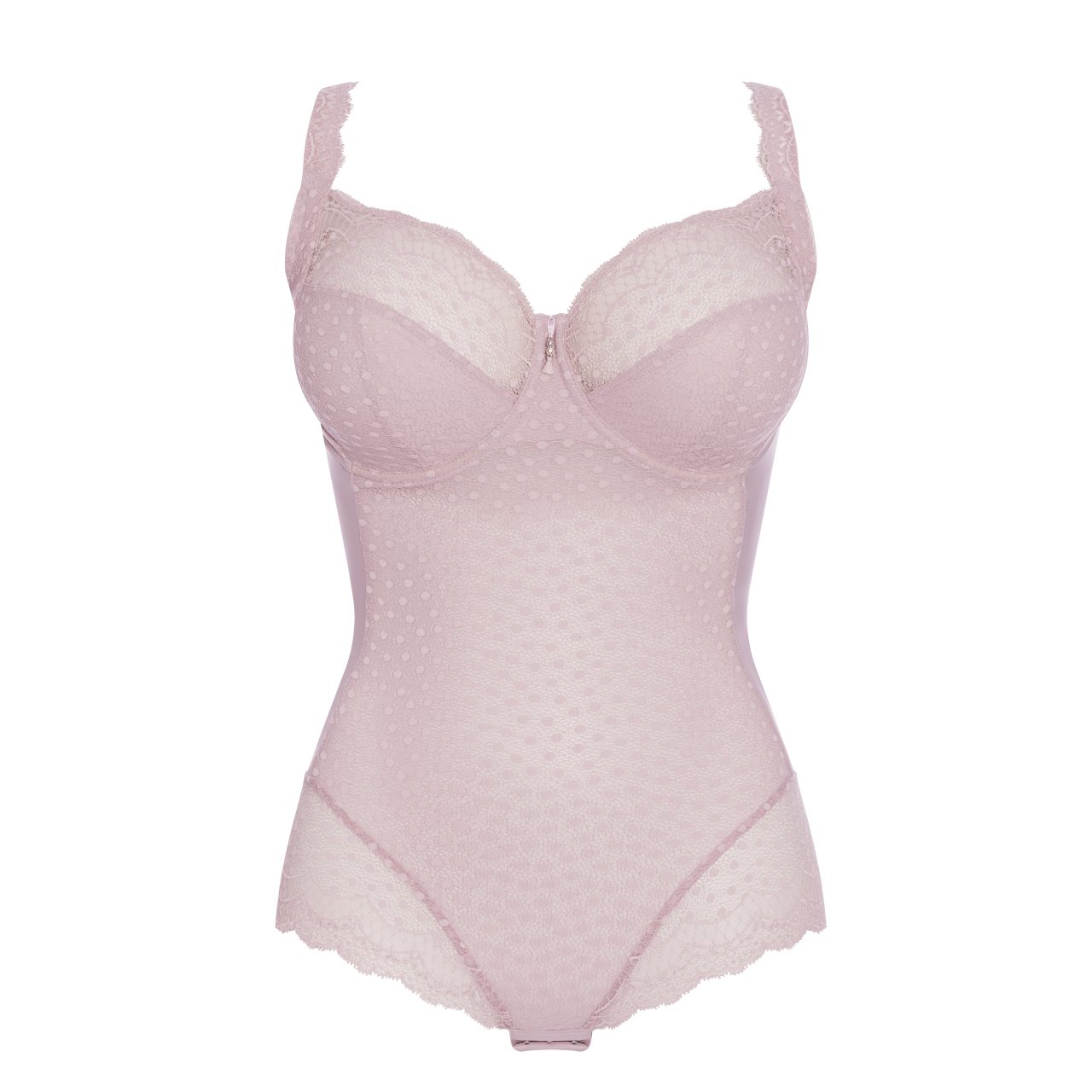 Saatavilla on myös body, jossa on sama kaarituellinen kuppi kuin toppaamattomassa liivissä. Bodyn takaosa on mikrokuituinen ja etuosa pitsinen. Myös jalantie on kruunattu upealla pitsillä.