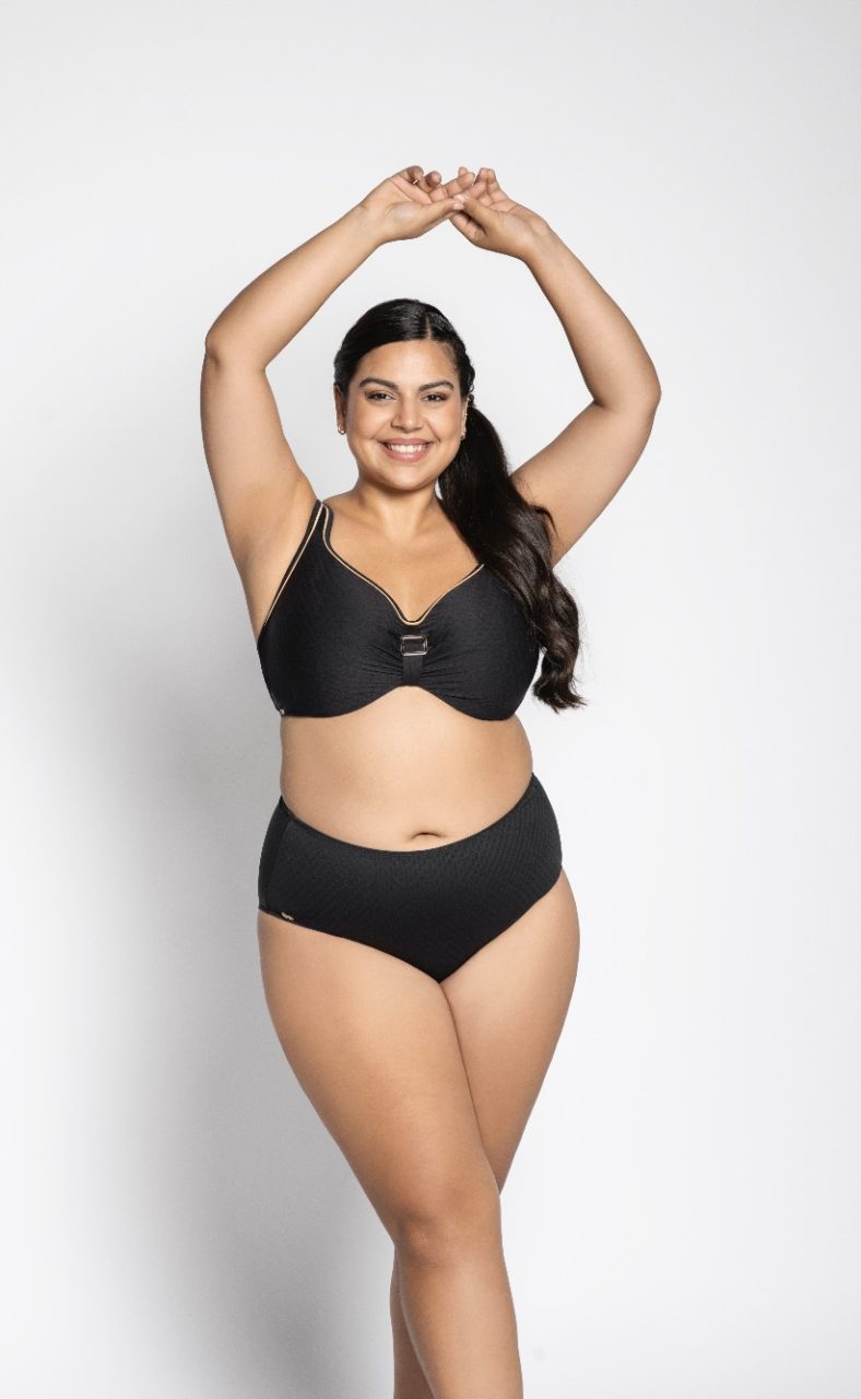 Kevyesti ja pehmeästi topattu bikiniliivi ryhdistää, tukee ja muotoilee kauniisti poven. Piilokaarituellisen kupin ulkopuolta verhoaa näyttävästi rypytetty kangas. Tukeva vyöte sekä säädettävät, leveät olkaimet lisäävät käyttömukavuutta. Myös bikiniliivissä kaarituet on lyhennetty uinnin vaatimusten mukaan sopiviksi.