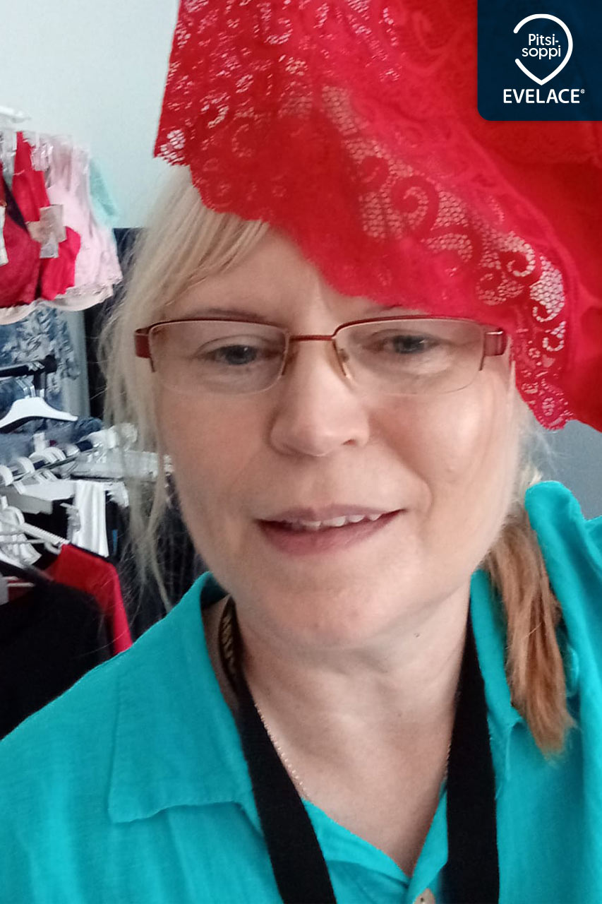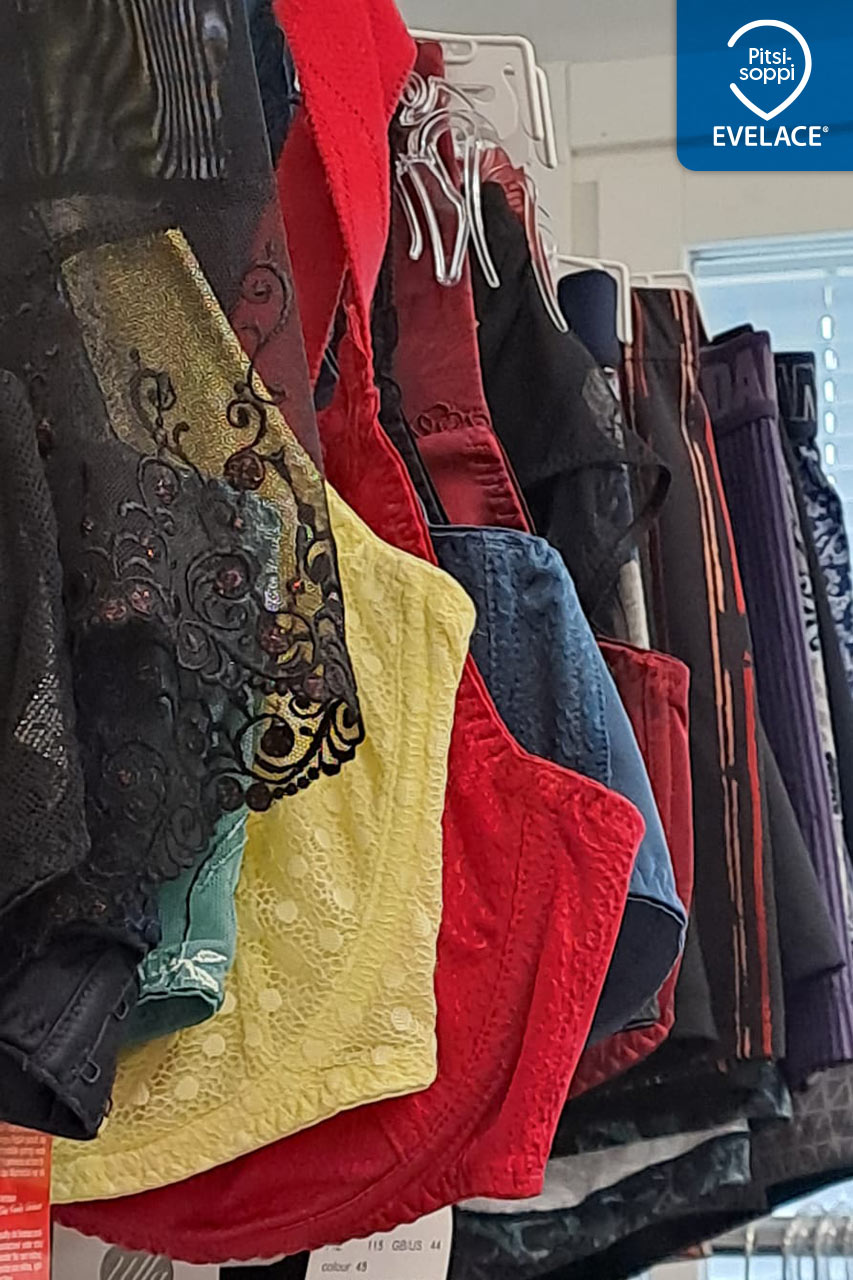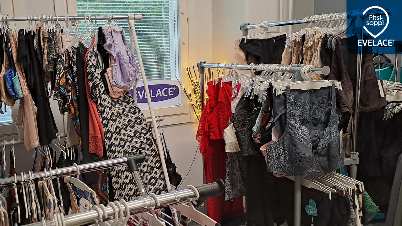 Koosta viis, yllätyt iloisesti, kun täällä saat henkilökohtaista palvelua koosta riippumatta. Isot koot – sirot koot ja siltä väliltä. Myös imetysliivejä, urheiluliivejä, yöasuja, sukkatuotteita ja kulloisenkin kauden mukaisia uutuuksia ja myös tarjouksia! Myynnissä on eurooppalaisten brändien tuotteita sekä Evelacen omaa tuotantoa. Tiukka laaduntarkkailu ja ihoa hemmottelevat, kestävät, pehmeät kankaat ja pitsit ovat ominaista Evelacelle. Voit selata mallistoja: www.evelace.fi
